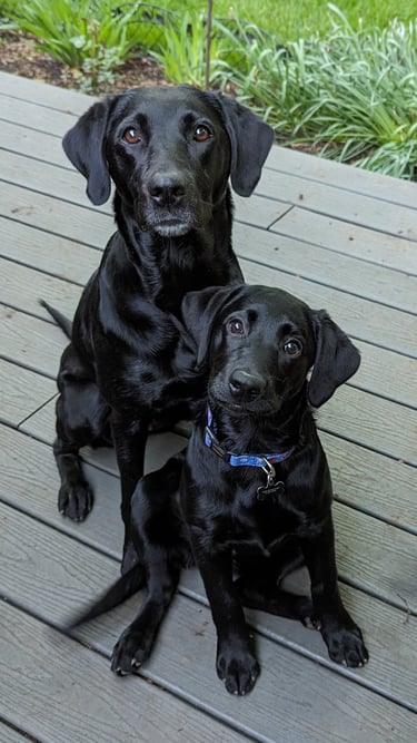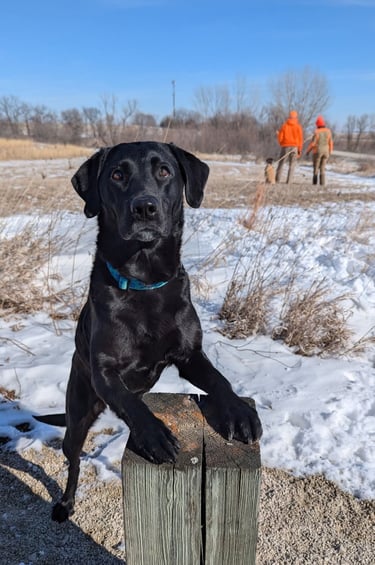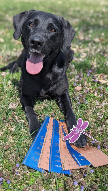 Cascade is our matriarch and a one-in-a-million kind of dog. It took us over two years of searching to find a puppy like her so when we did, it felt like hitting the jackpot! Our hope was to find a female that would compliment Trek's temperament while aligning with our breeding goals of health, size, color and biddability. She comes from hunting lines and even though she has a whole lot of drive, she has a lovely off switch which makes her easy to live with. Cascade is the definition of a "good dog" and we're not sure she can do something wrong even if she tried. She is a jack of all trades as she enjoys playing in the rally-o and obedience ring, will do anything to play nosework games, goes nutty to retrieve a bird, has a blast zooming through agility courses and is calm and steady as a service dog in public.