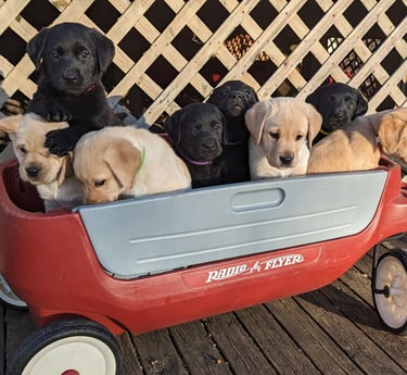 Every interaction a puppy has, it is learning something. And whether or not that learning is to the benefit of it's future owner is left at the hands of their breeder. We take immense pride in raising our puppies. From Early Neurological Stimulation (ENS) to Puppy Culture, our pups are exposed to all sorts of new sights, sounds, animals and people. We do everything possible to build a confident, happy-go-lucky puppy that transfers easily into it's new home.