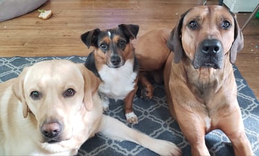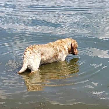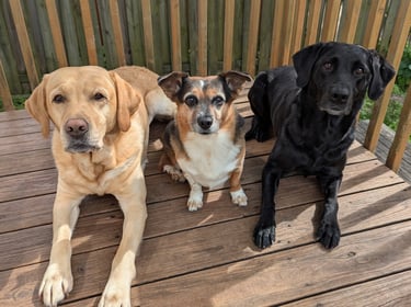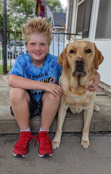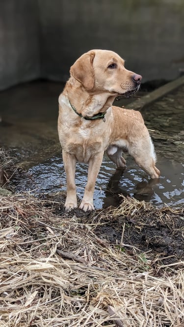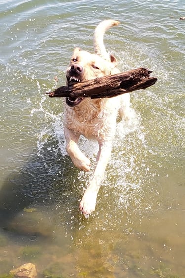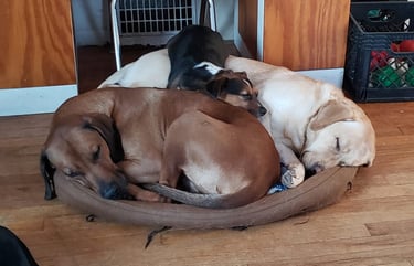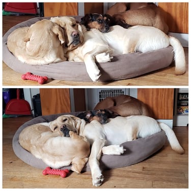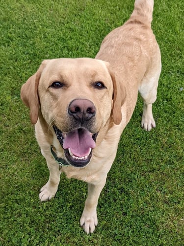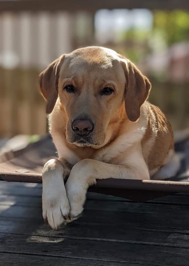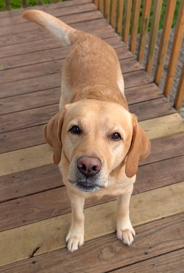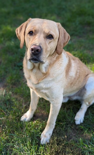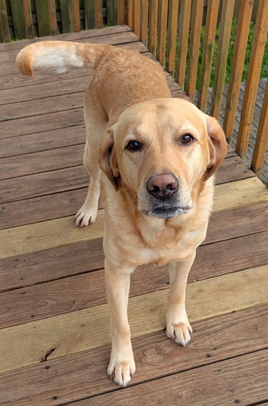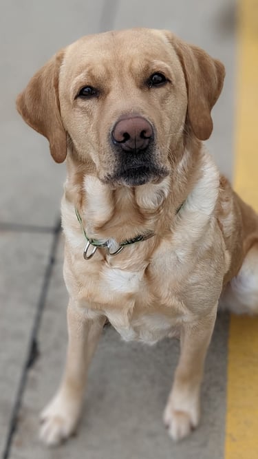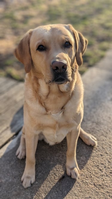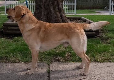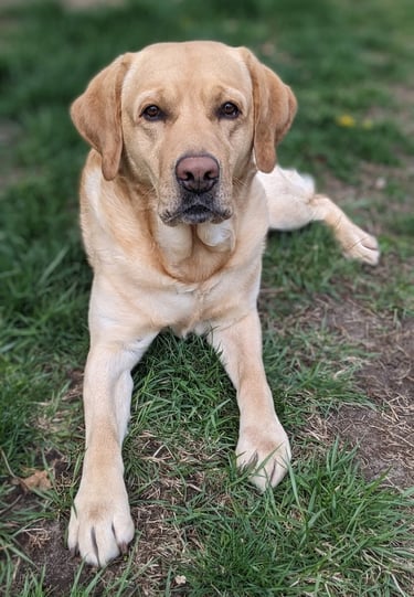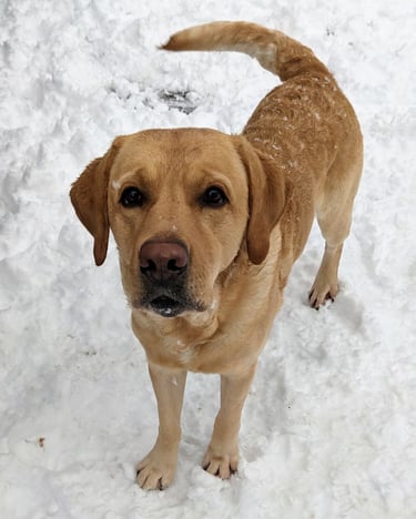 For over 15 years I worked as a lead trainer for a service dog organization and throughout that time we consistently got wonderful puppies from Formaro Labradors in Indianola, Iowa. From temperament, health and longevity, I was so, so pleased with how those puppies matured into dependable, light-hearted adults. I knew at some point I would have to have one for myself... Along came Trek! Trekker Dekkers, Chubby Trekkers (hence his registered name, a spin on Chubby Checkers) and Trekosaurus-Rex are just a few of his nicknames. He's a handsome, goofy character with a heart of gold. Originally trained for therapy work, he has now retired to the couch and spends his days sleeping sunnyside up.